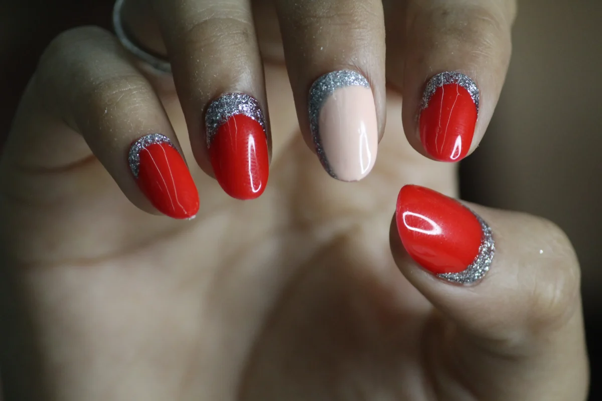 Silver Glitter And Red Gel Polish 3D Flowers New Colors Marriage Like | SHRADDHA BRIDAL STUDIO® Artificial Fake Nail Art | Press on Nails
