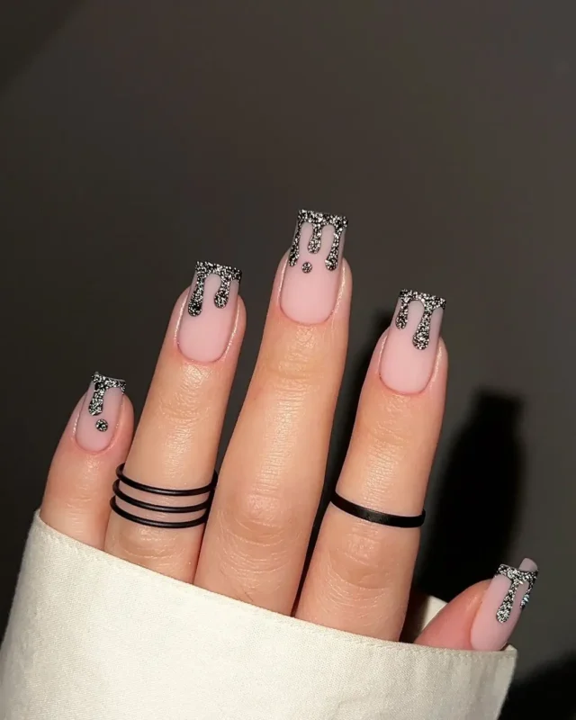 Silver And Black French Glitters Design Party Type All Design Is Look Like Fabulous | SHRADDHA BRIDAL STUDIO® Artificial Fake Nail Art | Press on Nails