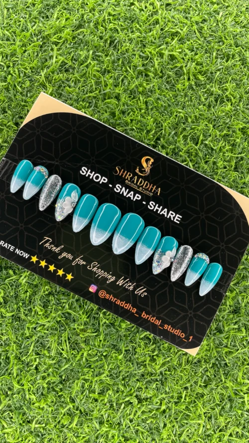 Green Shining Colour | SHRADDHA BRIDAL STUDIO® Artificial Fake Nail Art | Press on Nails