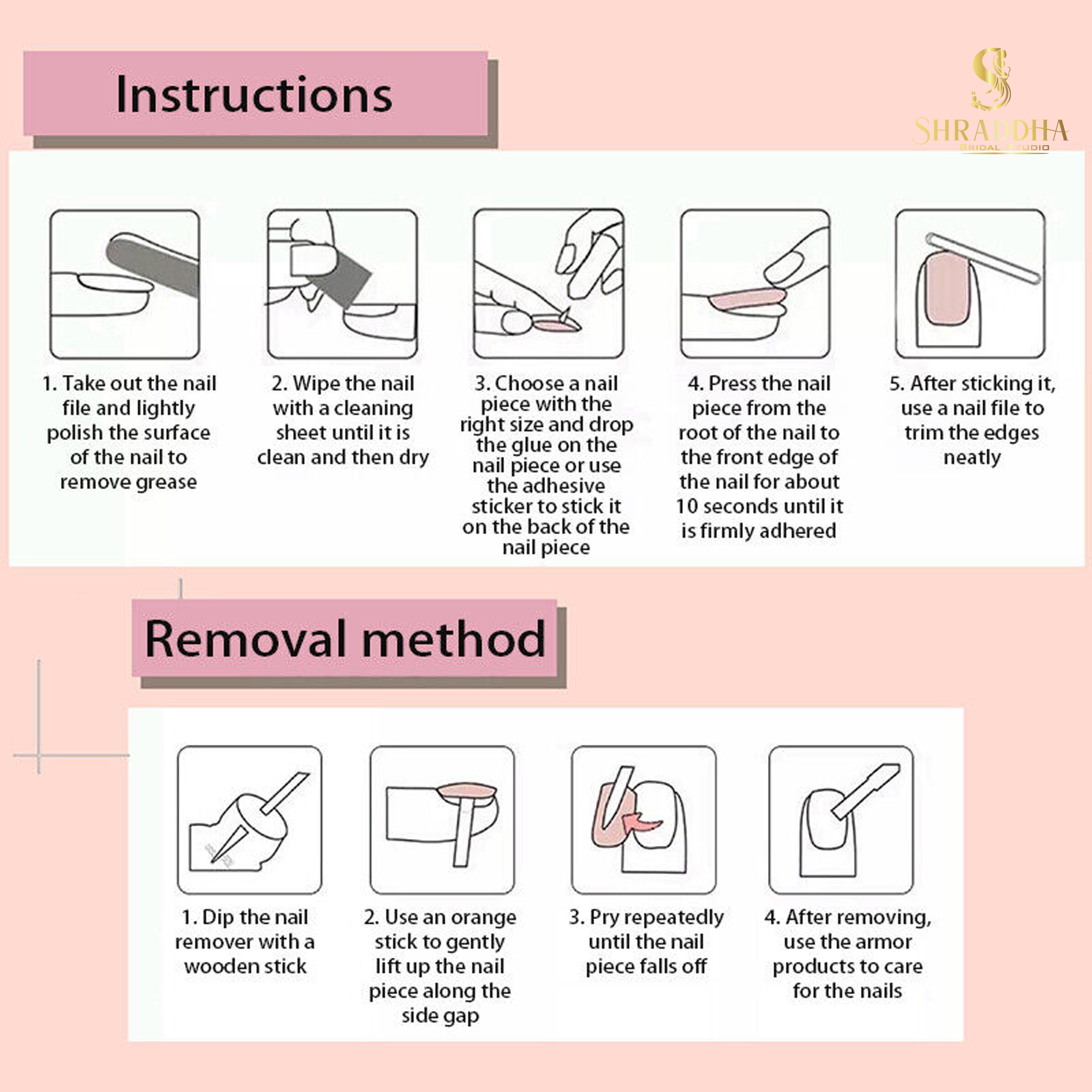 - Press on Nails Medium: No harm to your nails, easy to wear and remove, composed of innocuous ABS material that is resistant to chipping, breaking, and fading.