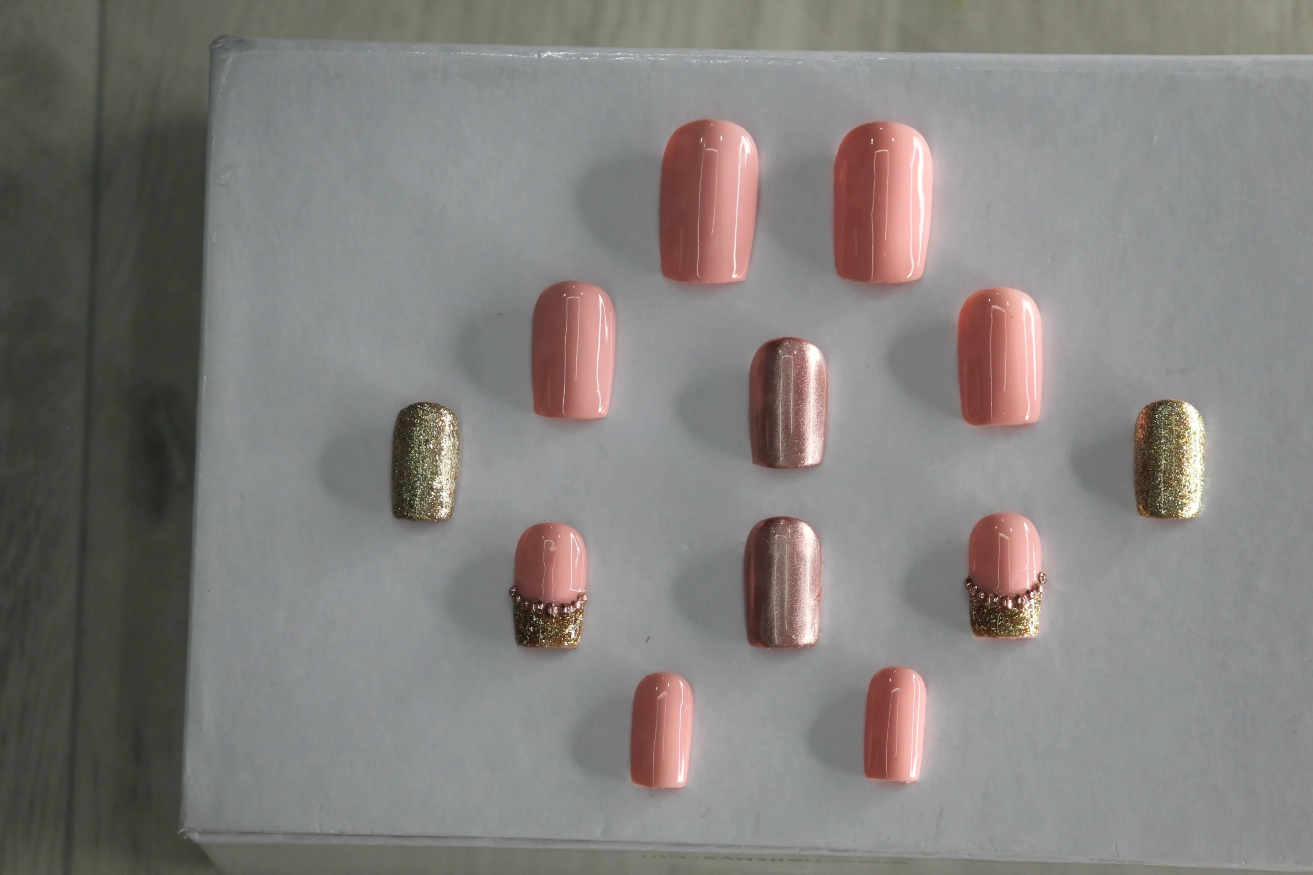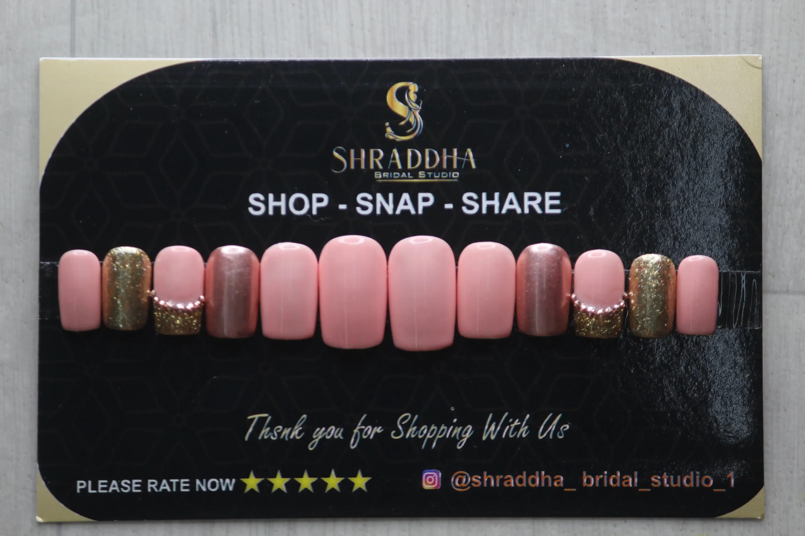 Glitter Gold Nails Long Size | SHRADDHA BRIDAL STUDIO® Artificial Fake Nail Art | Press on Nails