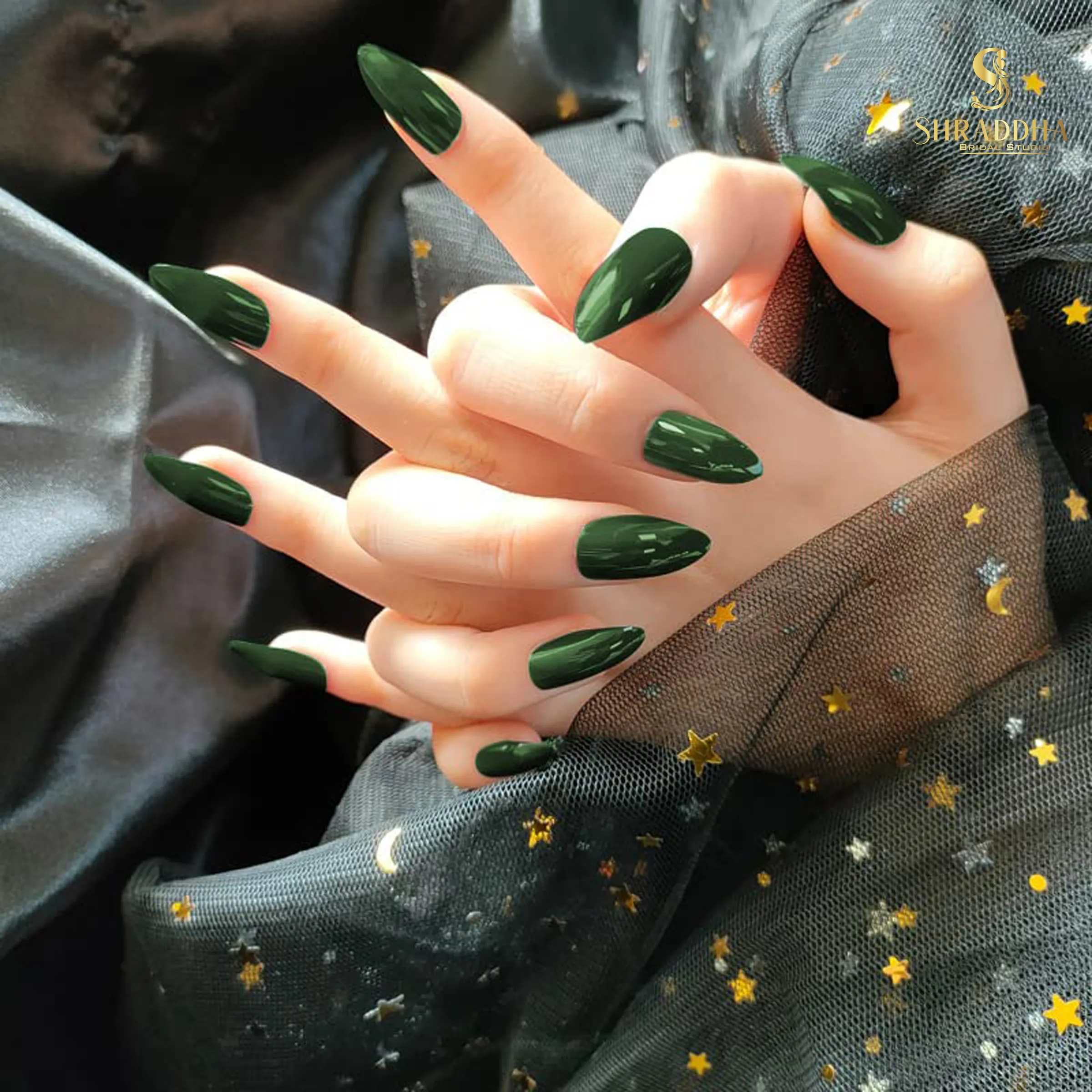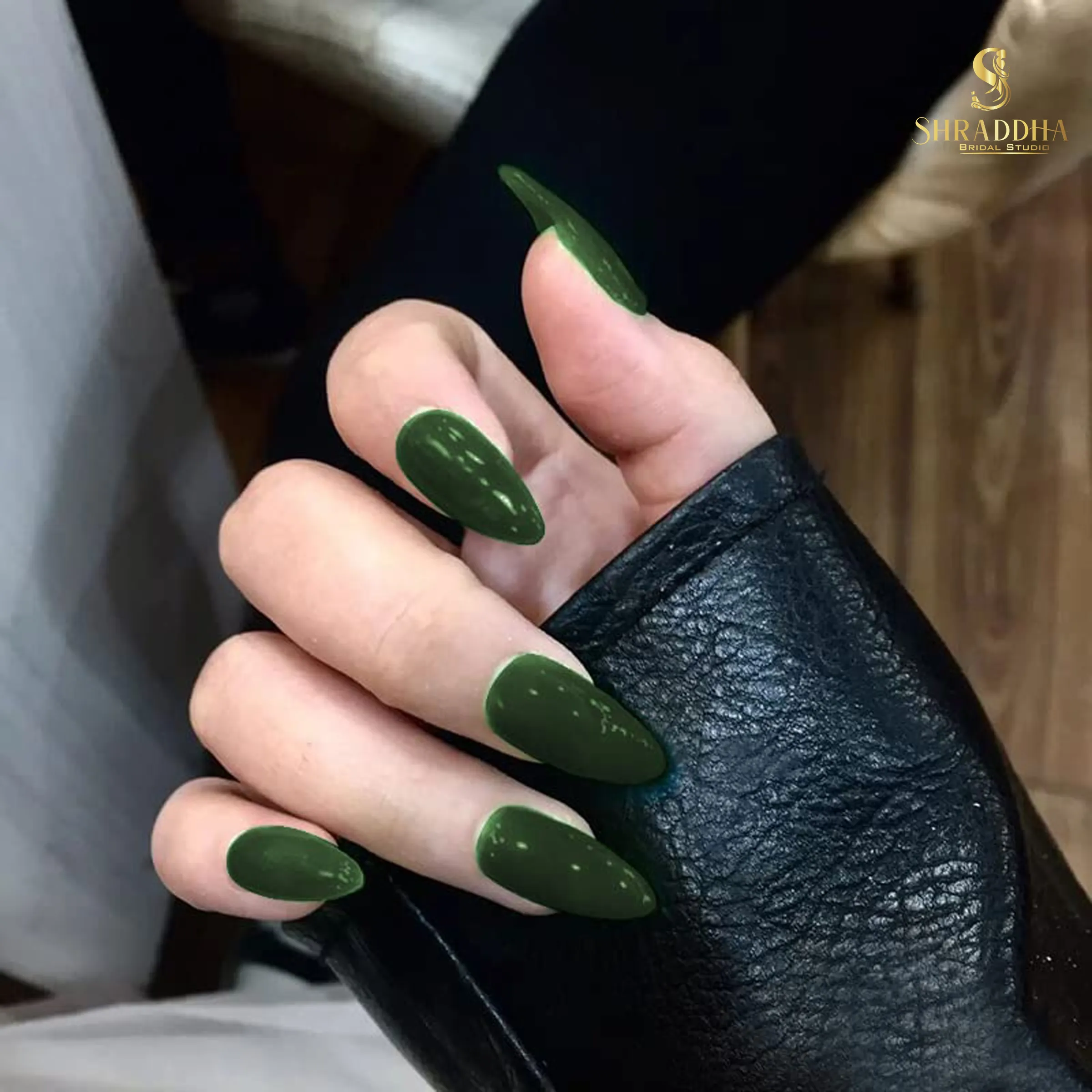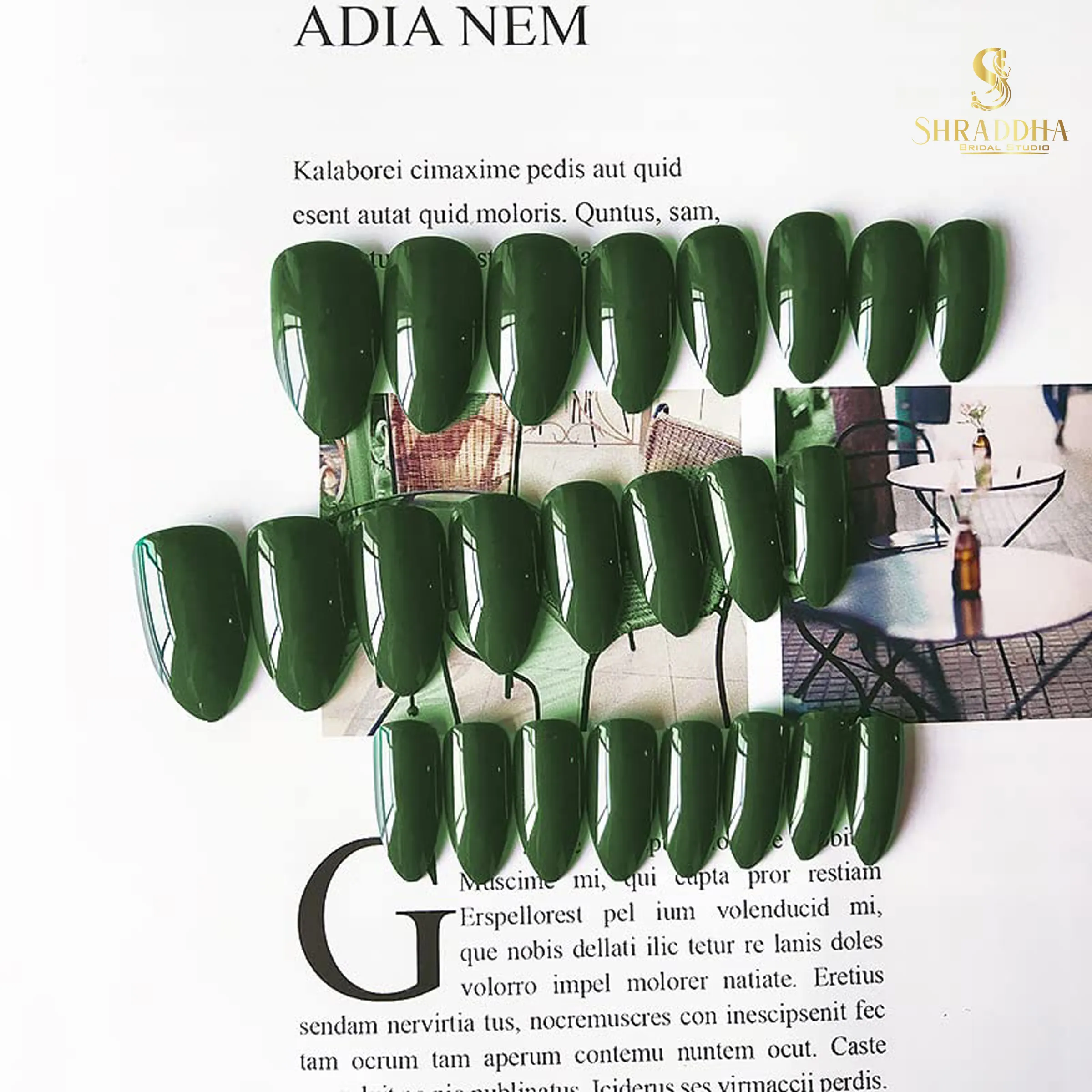 Green Shining Colour | SHRADDHA BRIDAL STUDIO® Artificial Fake Nail Art | Press on Nails