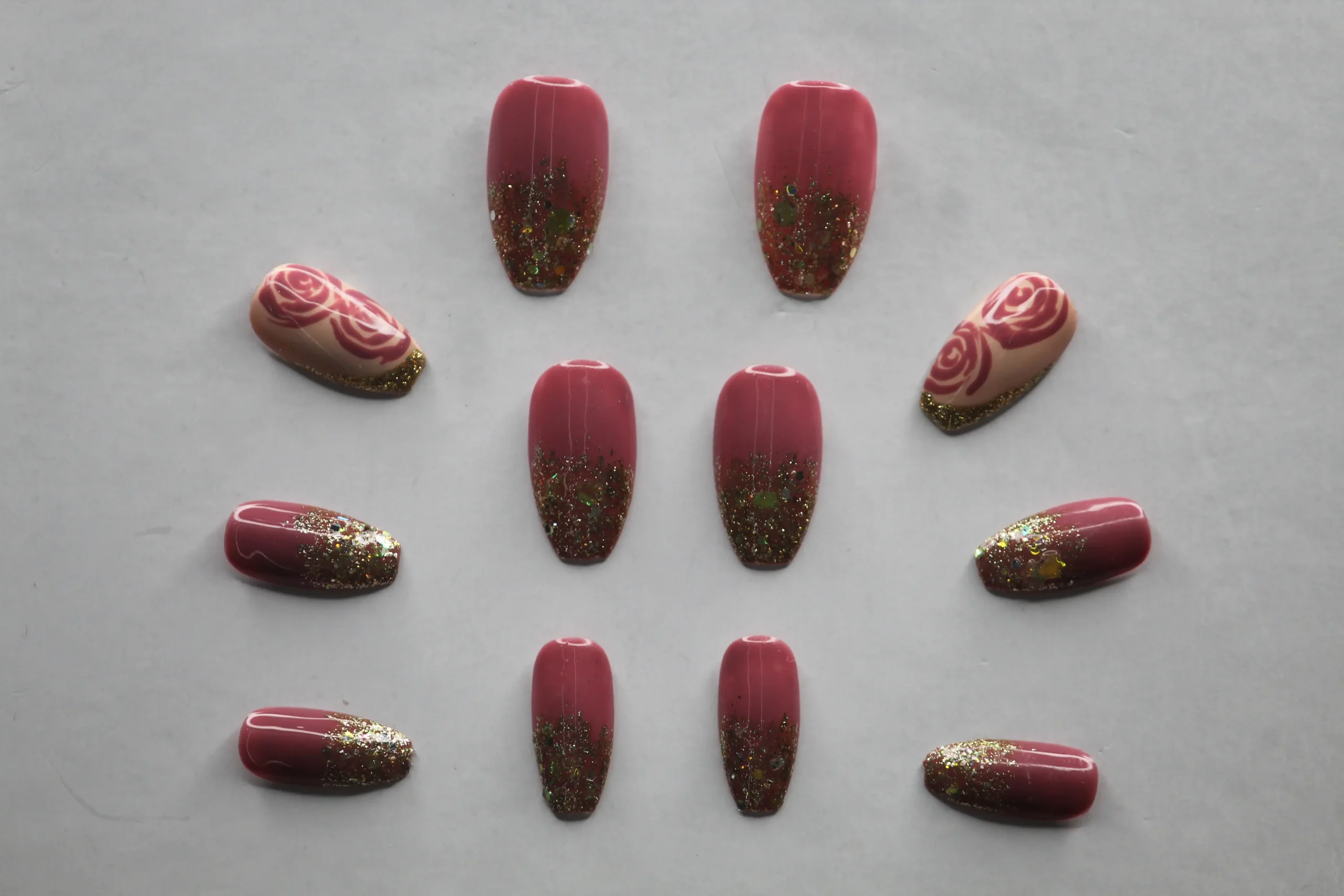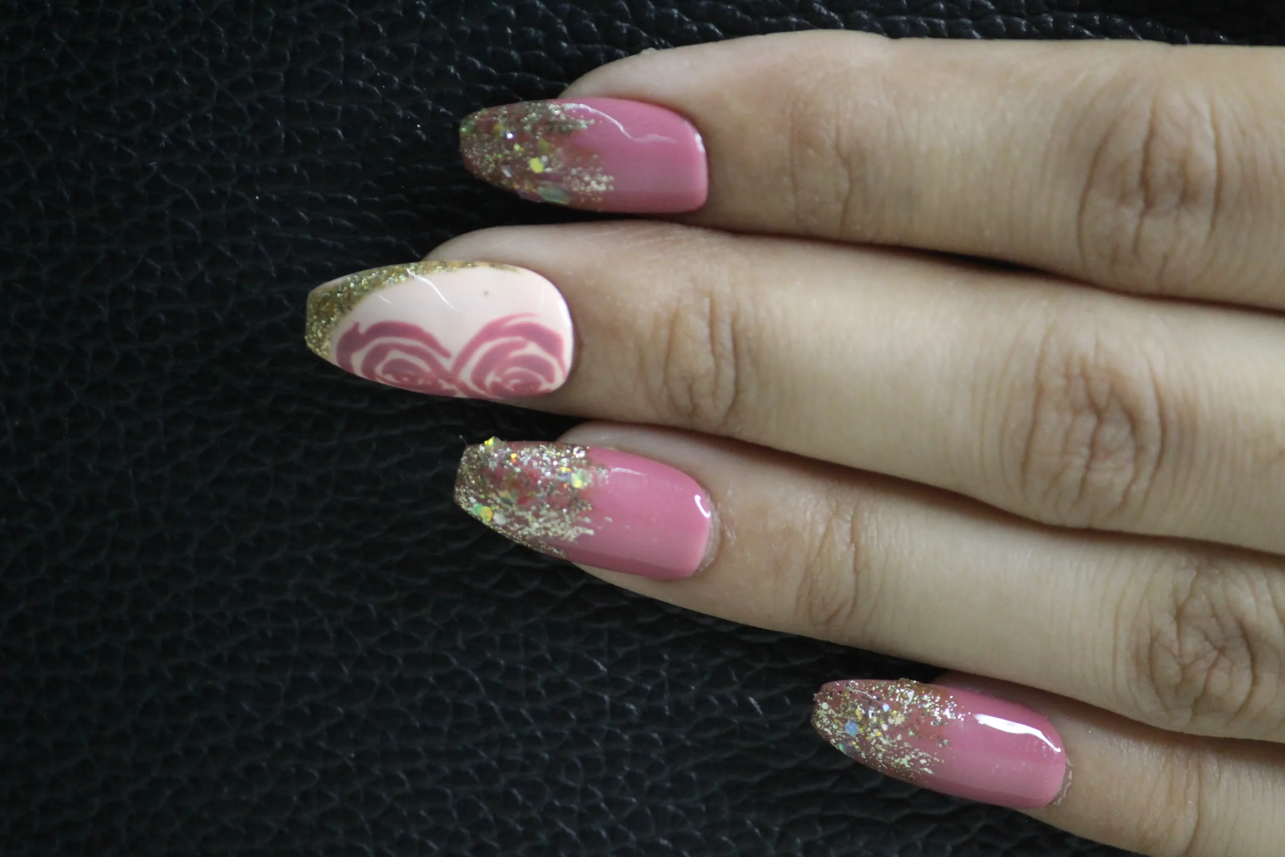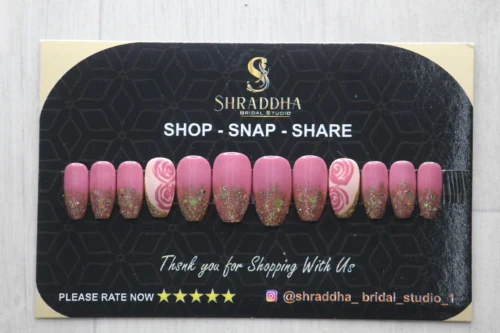 1 review for Pinky Golden Glitter With Best Look | SHRADDHA BRIDAL STUDIO® Artificial Fake Nail Art | Press on Nails