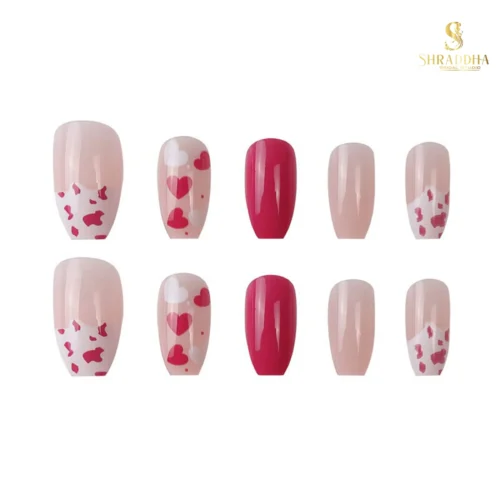 Pink And Red Heart Finishing | SHRADDHA BRIDAL STUDIO® Artificial Fake Nail Art | Press on Nails